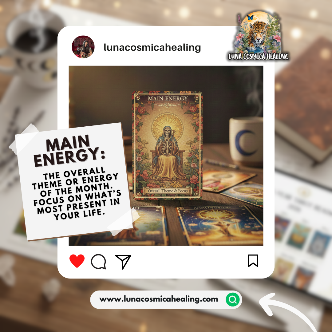 El tema o energía general del mes. Muestra lo que está más presente en tu vida y en qué debes concentrarte. -